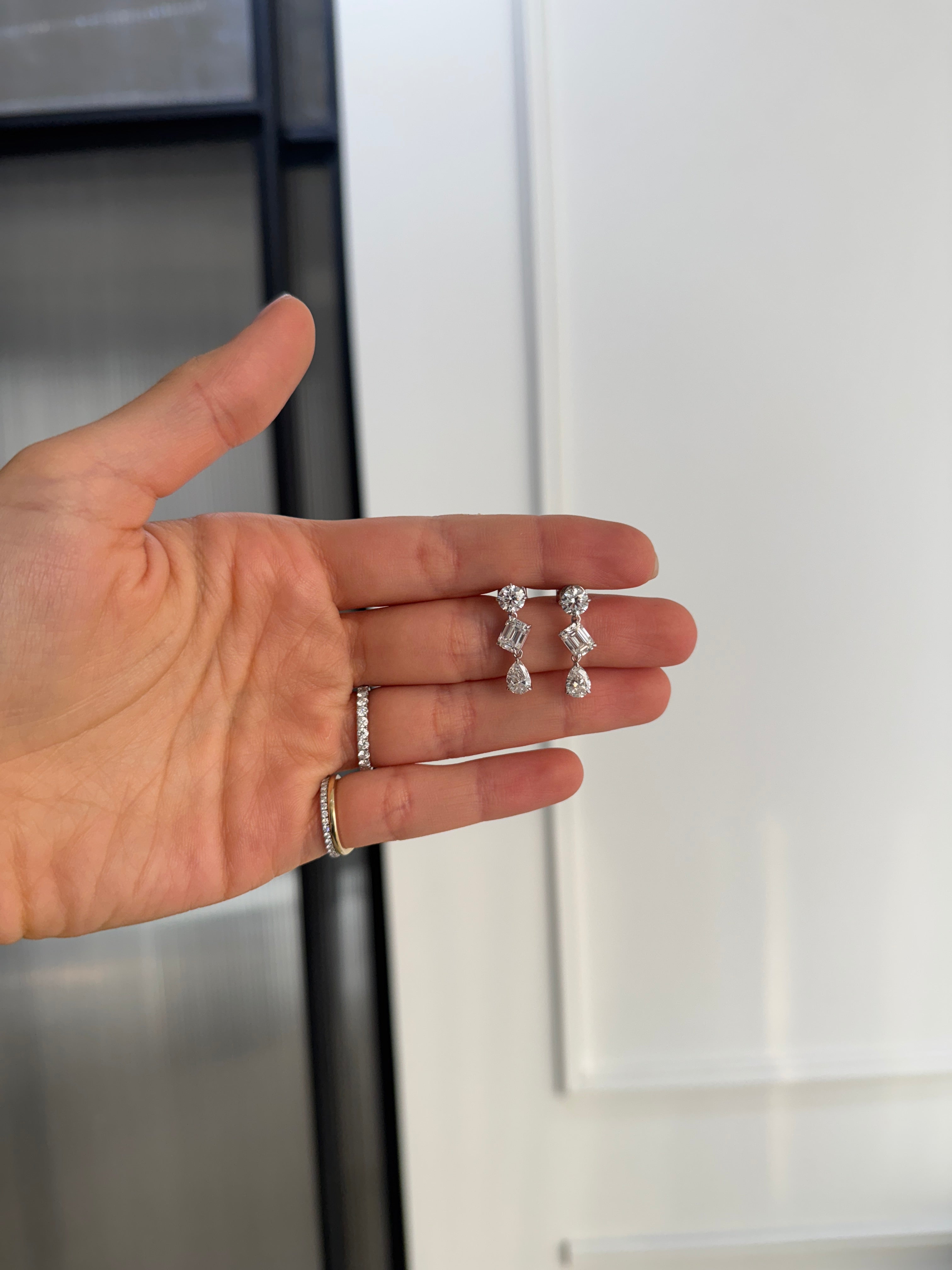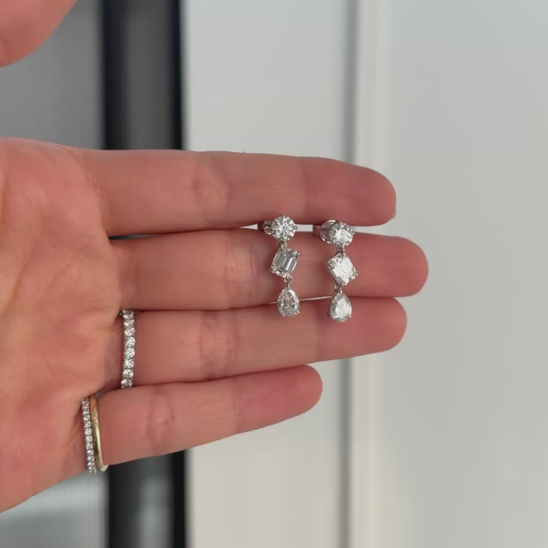 4.40 total carat weight – 2 x 0.60 ct round cut lab grown diamonds + 2 x 0.90 ct emerald cut lab grown diamonds + 2 x 0.70 ct pear cut lab grown diamonds